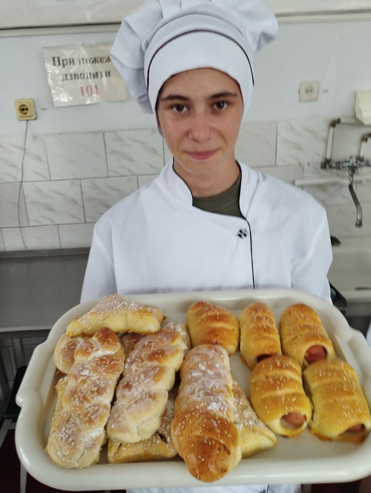 Приготування дріжджового здобного тіста опарним способом та виготовлення дрібношматкових напівфабрикатів з нього. В нас сьогодні здоба звичайна та вироби з неї: пиріжки з яблуками, плетенка, сосиска в тісті. Трішки спекотно але учні попрацювали добре при постійній підтримці керівництва ліцею, сьогодні Василь Степанович Новицький. Діти відповідали що і як готують. Настрій хороший, над помилками працюємо! Успіхів всім!