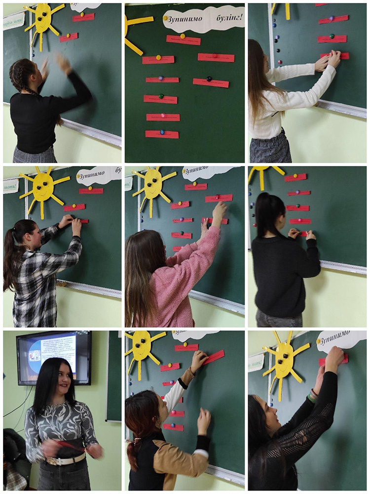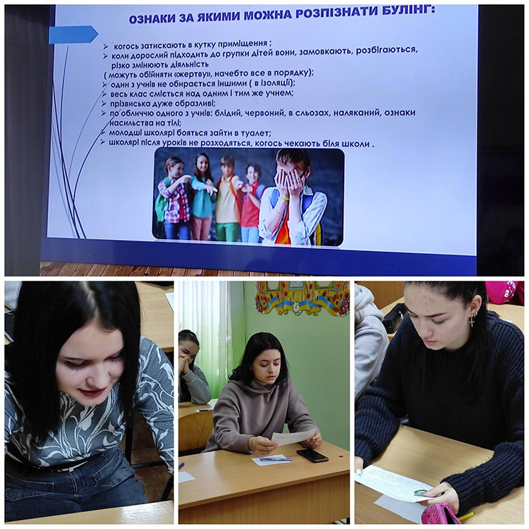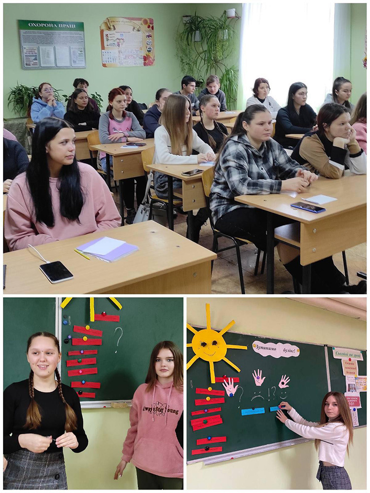 Здобувачам освіти було нагадано про принципи відповідального та толерантного спілкування, пояснено поняття булінгу, його види та можливі прояви в учнівському середовищі. Учні вчилися співчутливому ставленню до жертв насилля, навичкам надання і отримання допомоги в ситуації булінгу, нетерпимому ставленню до проявів агресії. Згадали номери «гарячої лінії», куди можна зателефонувати і звернутися за порадою чи допомогою, якщо потрапив у вкрай тяжку ситуацію і самотужки не можеш протидіяти чиїмось цькуванням.