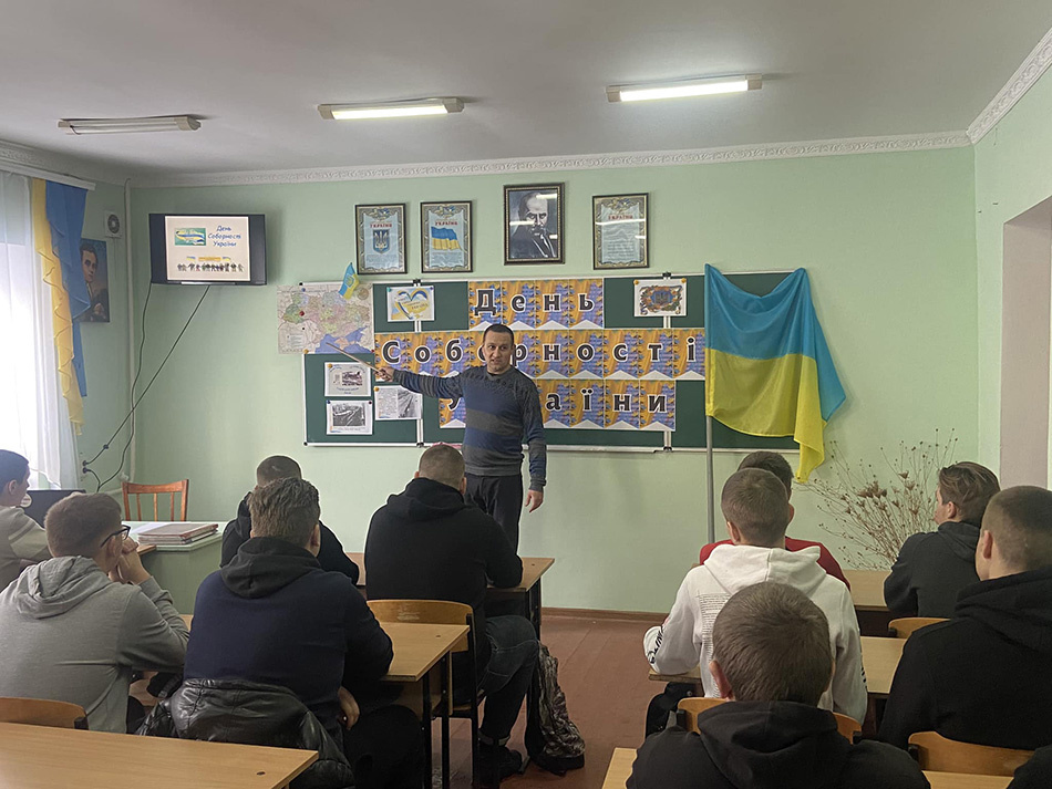 Сьогодні викладач історії Подільського професійного ліцею Мунтян В. С. провів для здобувачів освіти 189 групи годину спілкування за темою «Соборність України: сторінками історії», протягом якої учасники мали можливість пригадати основні етапи державотворення новітньої України, переглянути історичні хроніки титанічної боротьби українців за незалежність та суверенність своєї держави. Під час дискусії учасники дійшли висновку, що День Соборності має неабияке значення для української держави: проголосивши об’єднання українських земель понад століття тому, українці й сьогодні продовжують боротьбу за свою незалежність, ідентичність та цілісність. Наприкінці заходу Віталій Сергійович вчергове нагадав, що метою сьогоднішньої нашої боротьби є перемога соборної України – і досягнути її можливо лише в єдності всього українського суспільства.