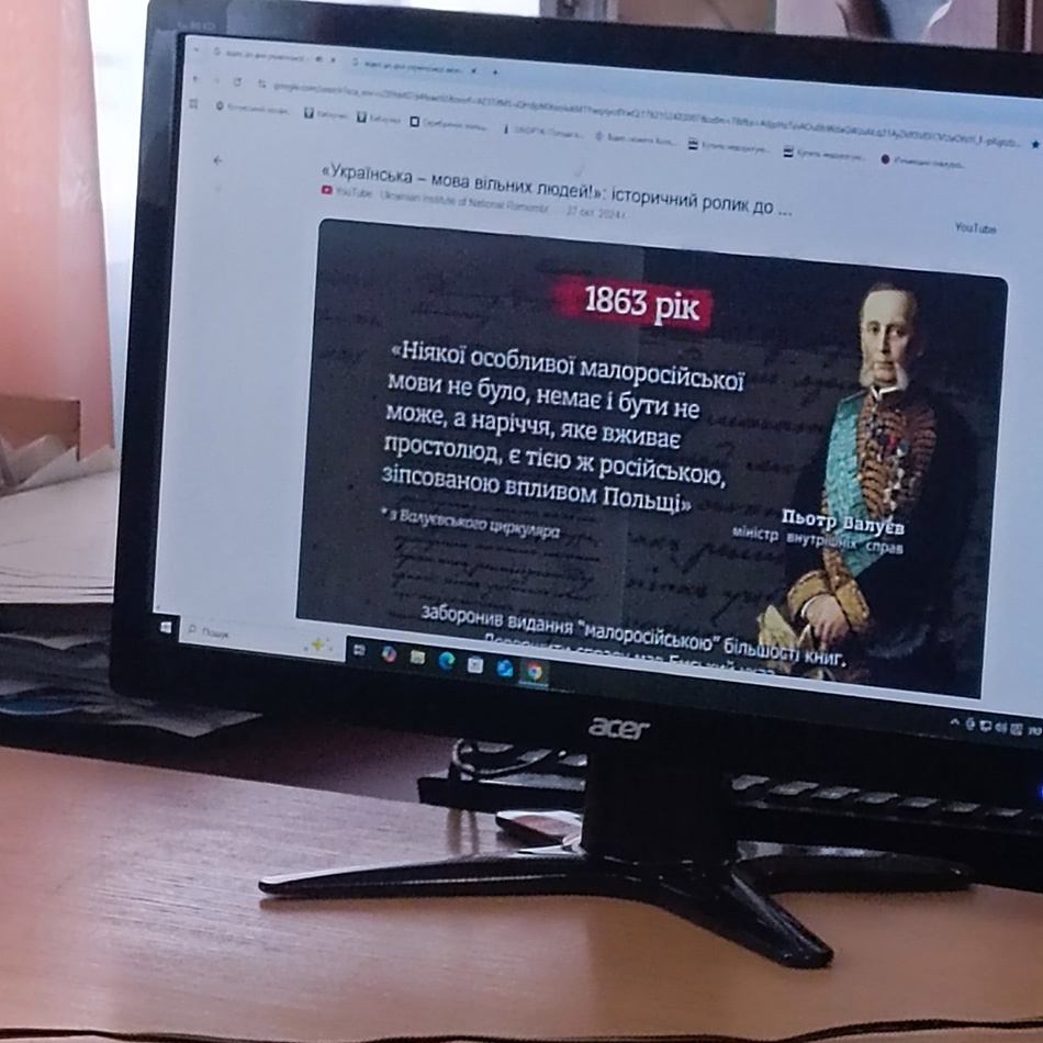 Учні переглянули підготовлену інформаційну презентацію з цікавими фактами про розвиток писемності, давні рукописи, діячів культури, які відстоювали мову в різні епохи.